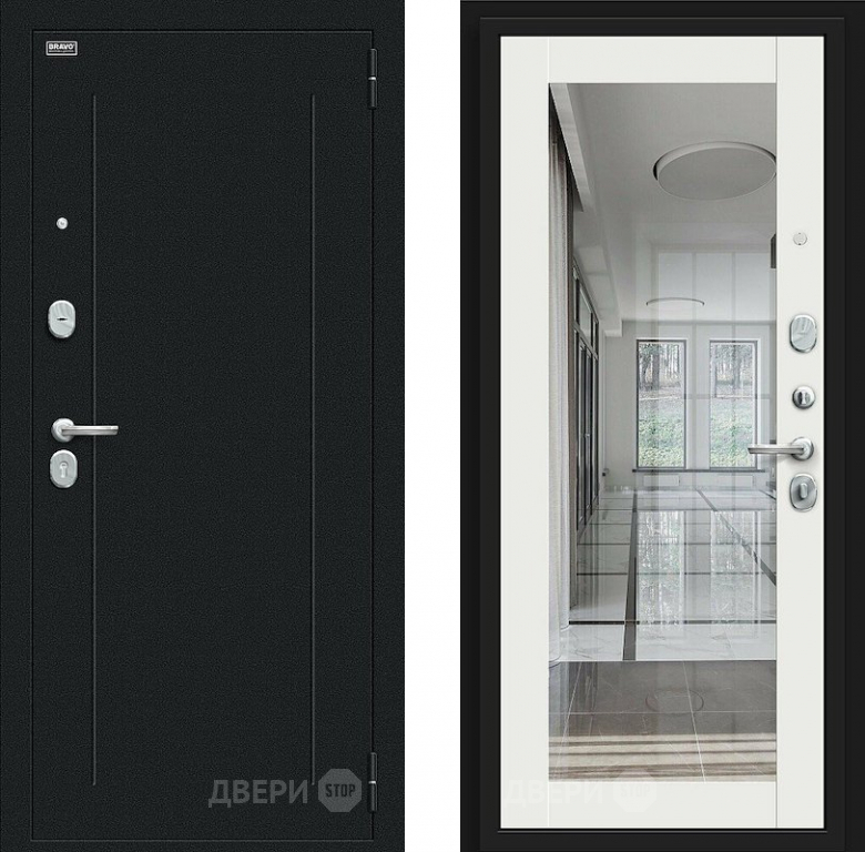Входная металлическая Дверь Bravo Флэш Букле черное/Off-white в Рузе 860х2050 мм