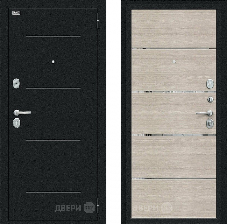 Входная металлическая Дверь Bravo Лайн Букле черное/Cappuccino Veralinga в Рузе 860х2050 мм