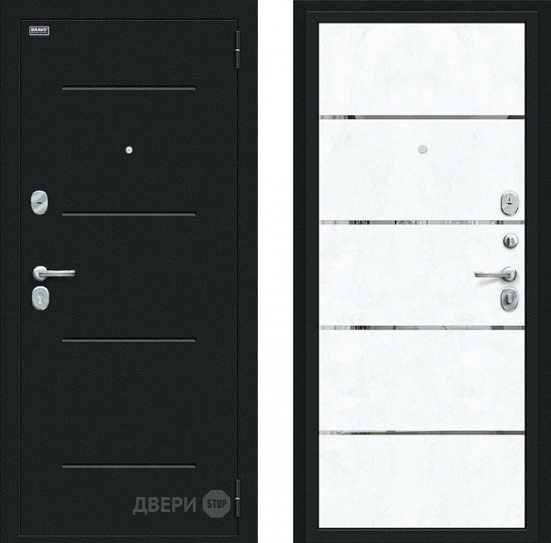 Входная металлическая Дверь Bravo Лайн Букле черное/Snow Art в Рузе 860х2050 мм