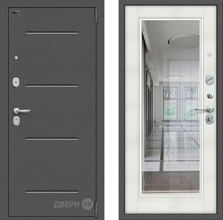 Входная металлическая Дверь Bravo Porta S-2 104/П61 с зеркалом Бьянко в Рузе 860х2050 мм