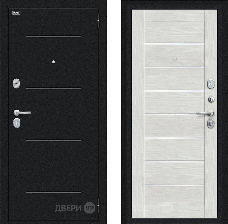 Входная металлическая Дверь Bravo Техно Букле черное/Bianco Veralinga в Рузе 860х2050 мм