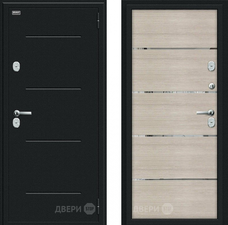 Входная металлическая Дверь Bravo Thermo Лайн Букле черное/Cappuccino Veralinga в Рузе 860х2050 мм