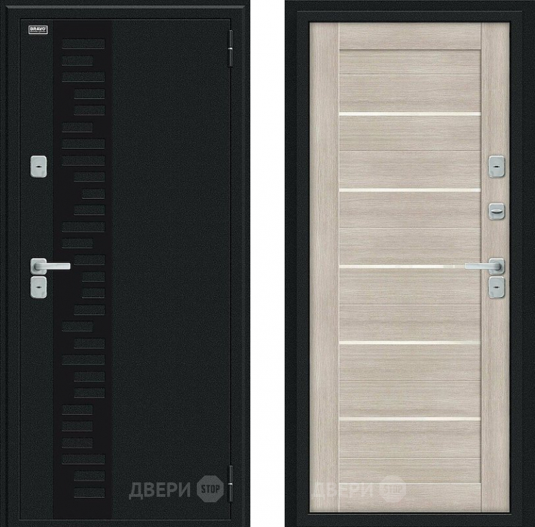 Входная металлическая Дверь Bravo Thermo Техно Декор Букле черное/Cappuccino Veralinga в Рузе 860х2050 мм