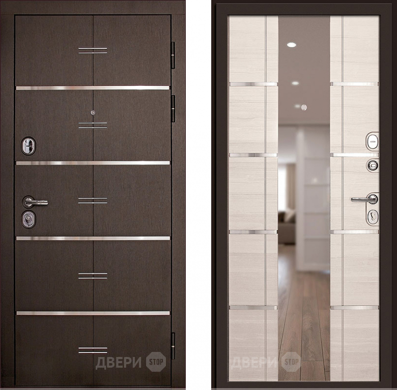 Входная металлическая Дверь (Дверной Континент) Савона с зеркалом Беленый дуб в Рузе 860х2050 мм