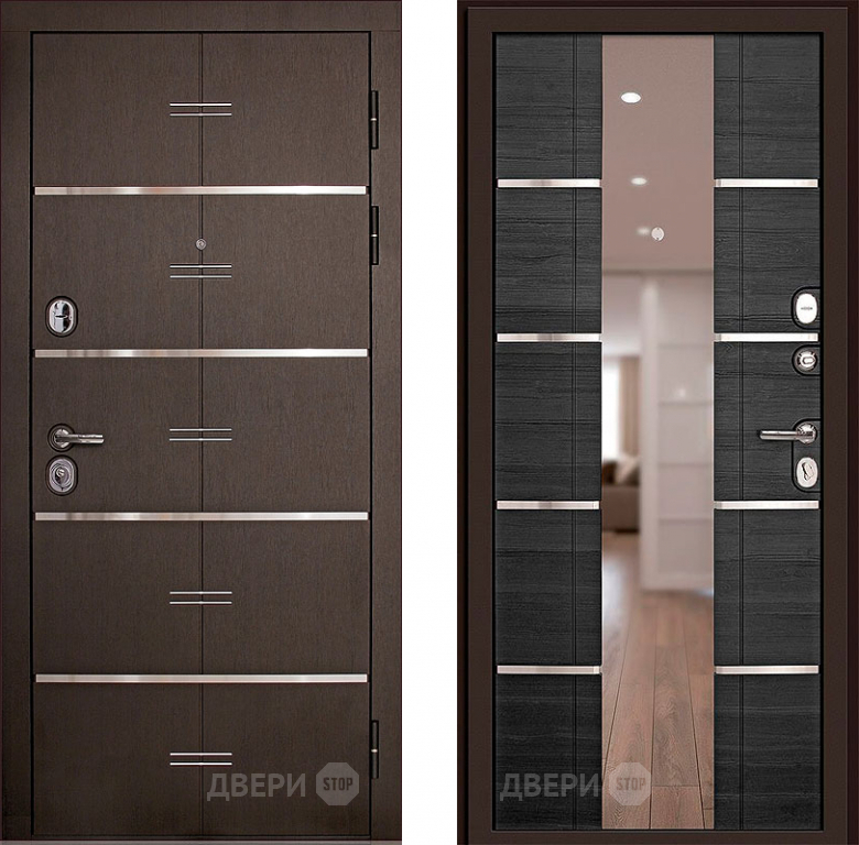 Входная металлическая Дверь (Дверной Континент) Савона с зеркалом Венге в Рузе 860х2050 мм