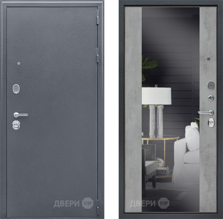 Входная металлическая Дверь АСД Спартак-Б с зеркалом Бетон светлый в Рузе 860х2050 мм