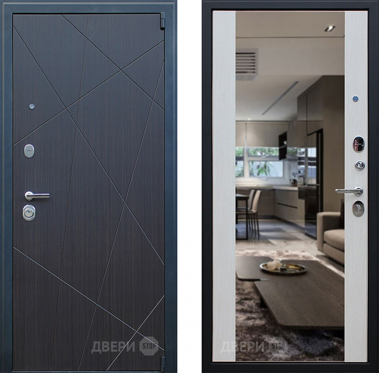 Входная металлическая Дверь АСД Вектор с зеркалом Лиственница белая в Рузе 860х2050 мм