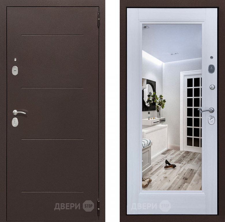 Входная металлическая Дверь Престиж 100 с зеркалом Медь/Лиственница белая в Рузе 860х2050 мм