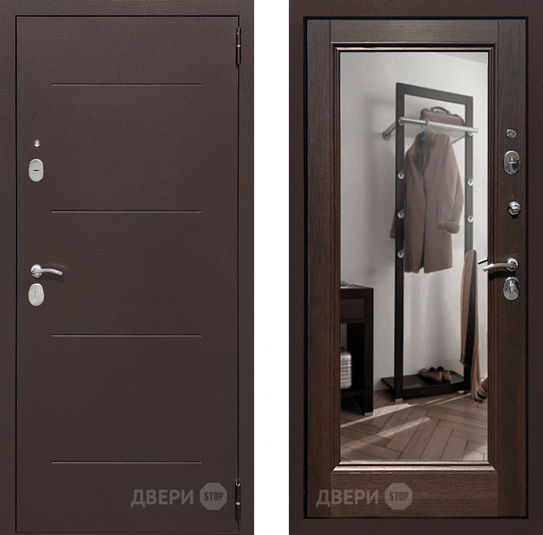 Входная металлическая Дверь Престиж 100 с зеркалом Медь/Венге в Рузе 860х2050 мм