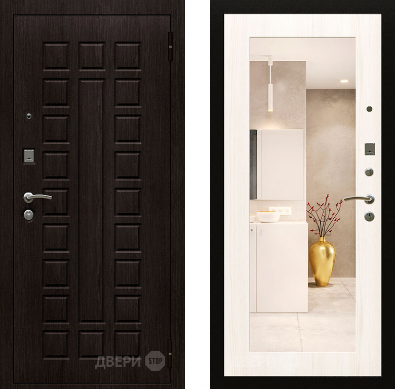 Входная металлическая Дверь Райтвер Сенат-лайф с зеркалом Беленый Дуб в Рузе 860х2050 мм