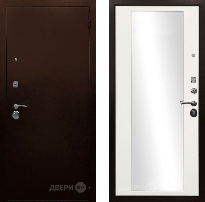 Входная металлическая Дверь Ратибор Рим 3К зеркало Белый матовый в Рузе 860х2050 мм