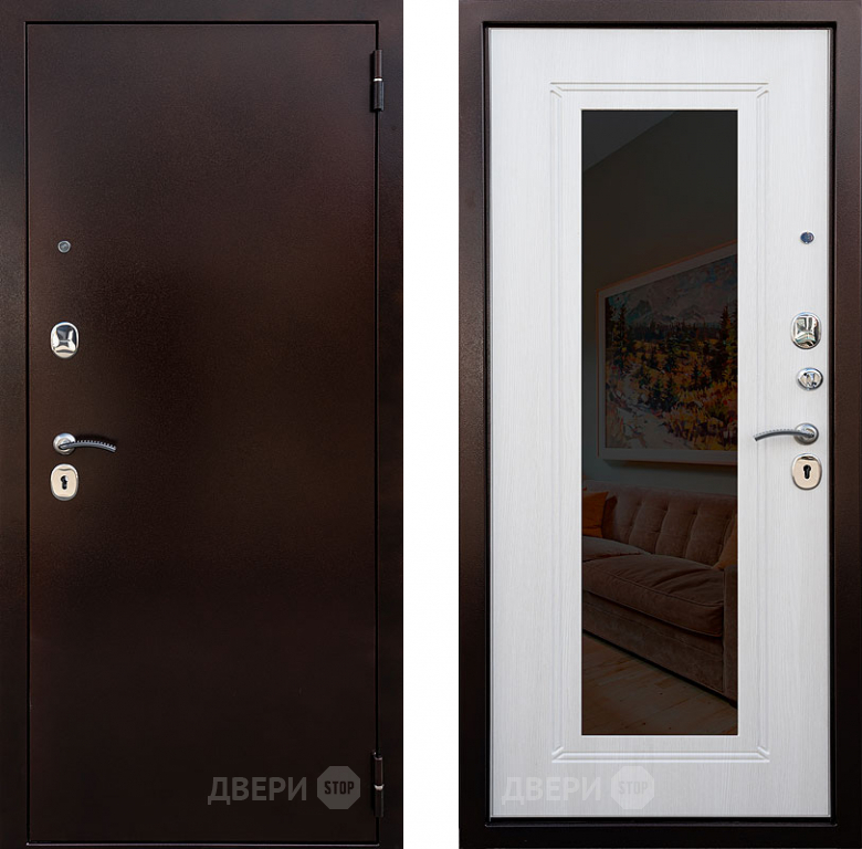 Входная металлическая Дверь Снедо Патриот зеркало Белая Лиственница в Рузе 860х2050 мм