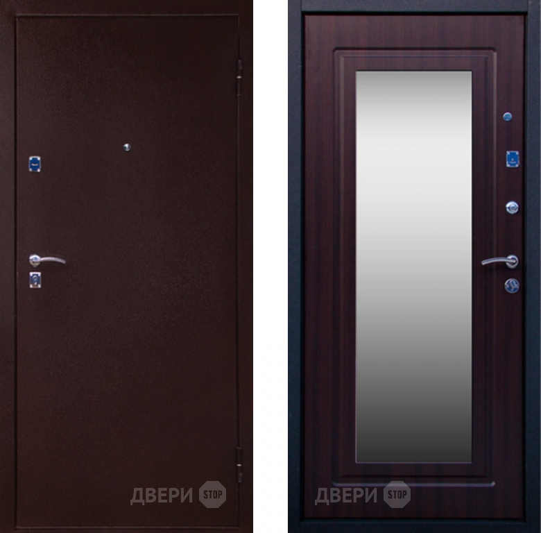 Входная металлическая Дверь СТОП Медь ЗЕРКАЛО Венге в Рузе 960х2050 мм