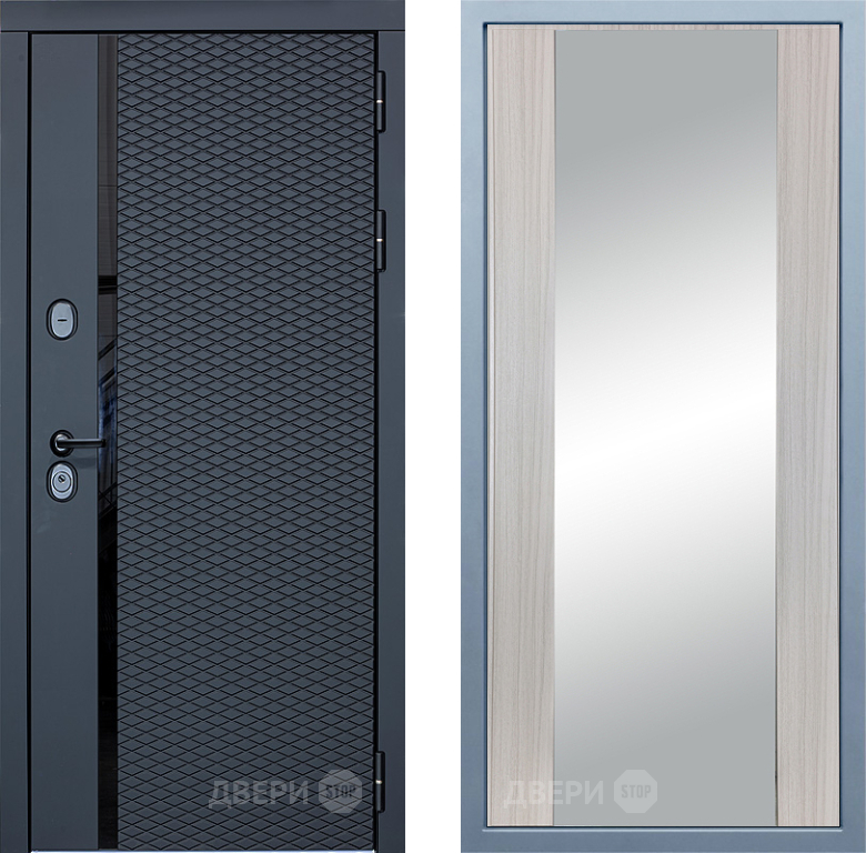 Входная Дверь Дива МХ-47 STR Д-15 Зеркало Сандал белый 860x2050 мм