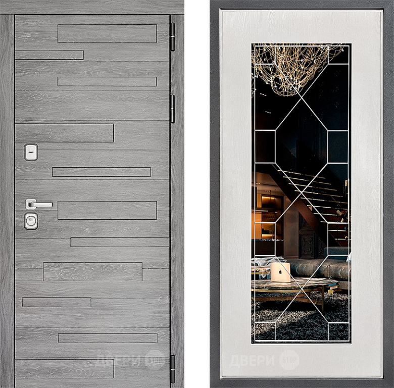 Входная Дверь Дверной континент ДК-10 ФЛ-Тиффани Зеркало Белое дерево 860x2050 мм