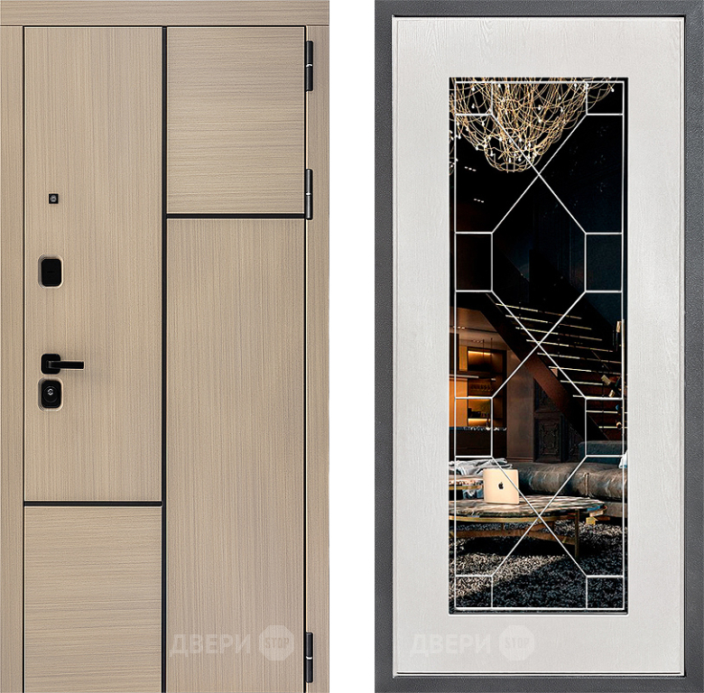 Входная Дверь Дверной континент ДК-14 ФЛ-Тиффани Зеркало Белое дерево 860x2050 мм