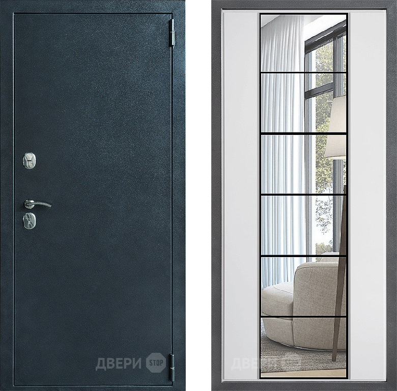 Входная Дверь Дверной континент ДК-70 Дизайн ФЛЗ-2 Зеркало Белый софт 860x2050 мм