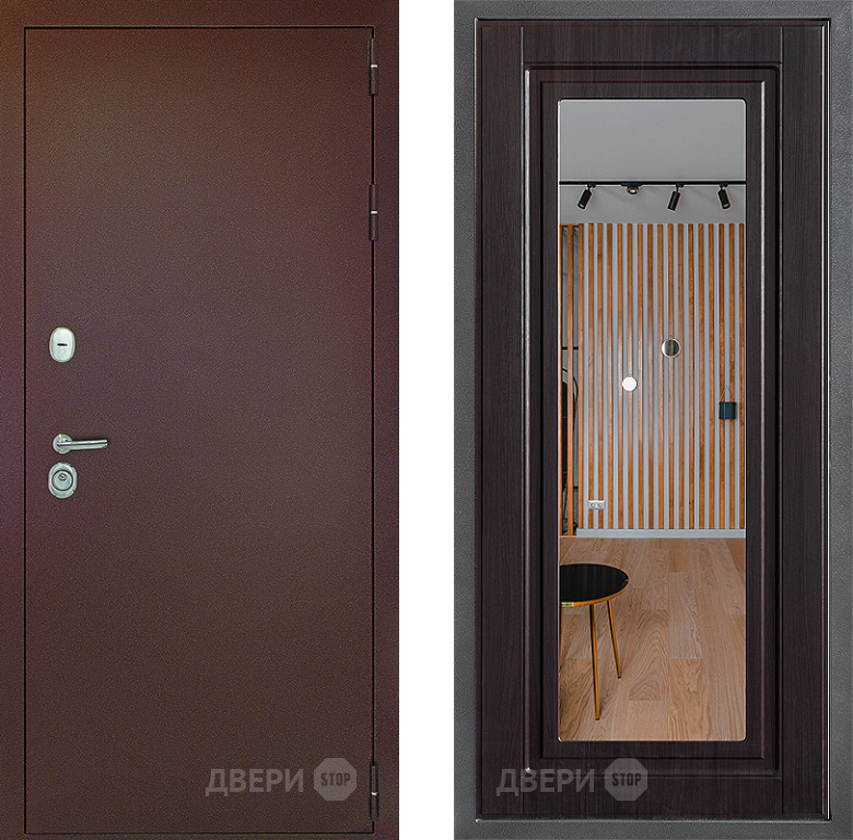 Входная Дверь Дверной континент Рубикон Медь Дизайн ФЛЗ Зеркало Венге 860x2050 мм