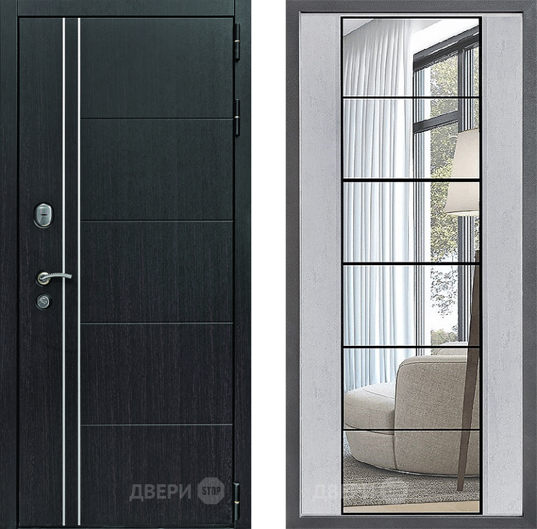 Входная Дверь Дверной континент Теплолюкс Дизайн ФЛЗ-2 Зеркало Бетон светлый 860x2050 мм