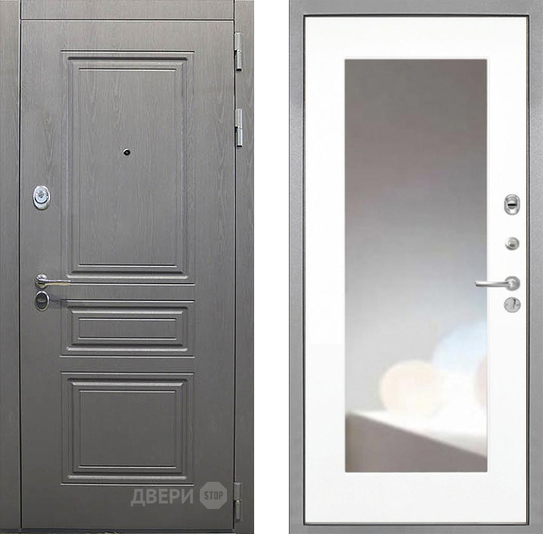 Входная Дверь Интекрон (INTECRON) Брайтон Графит ФЛЗ-120-М Зеркало Белый матовый 860x2050 мм
