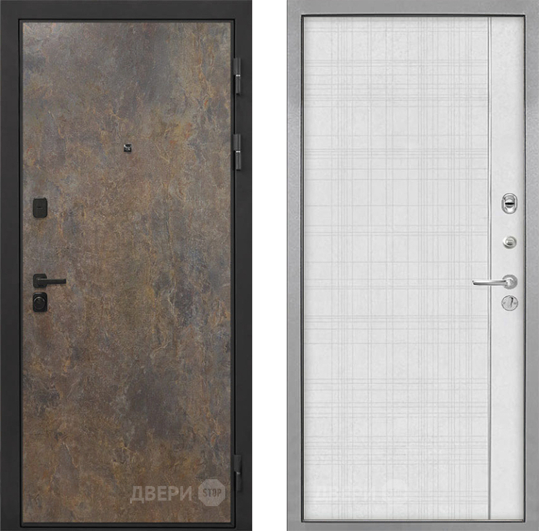 Входная Дверь Интекрон (INTECRON) Профит Black Гранж В-07 с молдингом Лофт белый 960x2050 мм