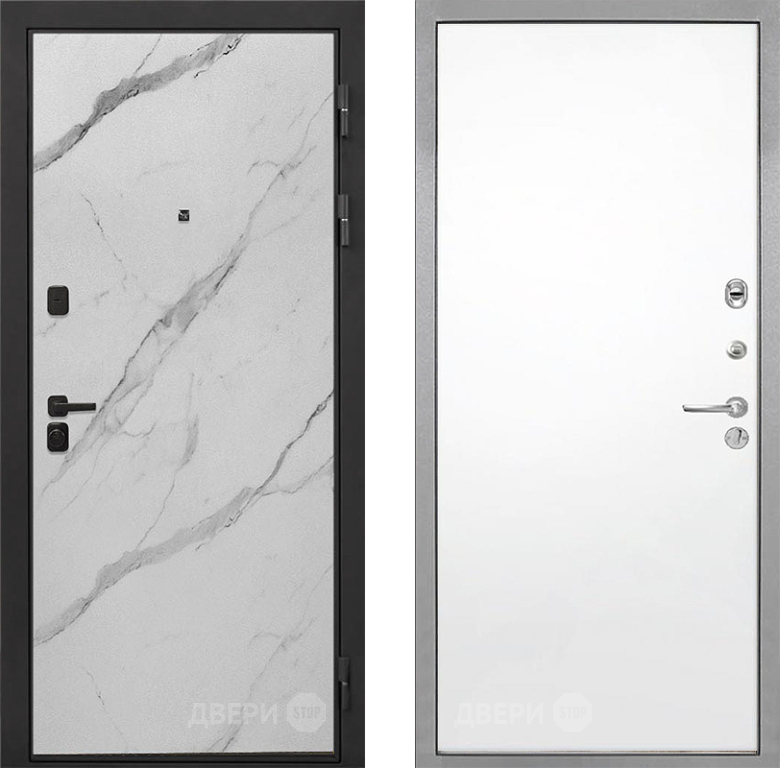 Входная Дверь Интекрон (INTECRON) Профит Black Мрамор Арктик Гладкая Силк Сноу 860x2050 мм