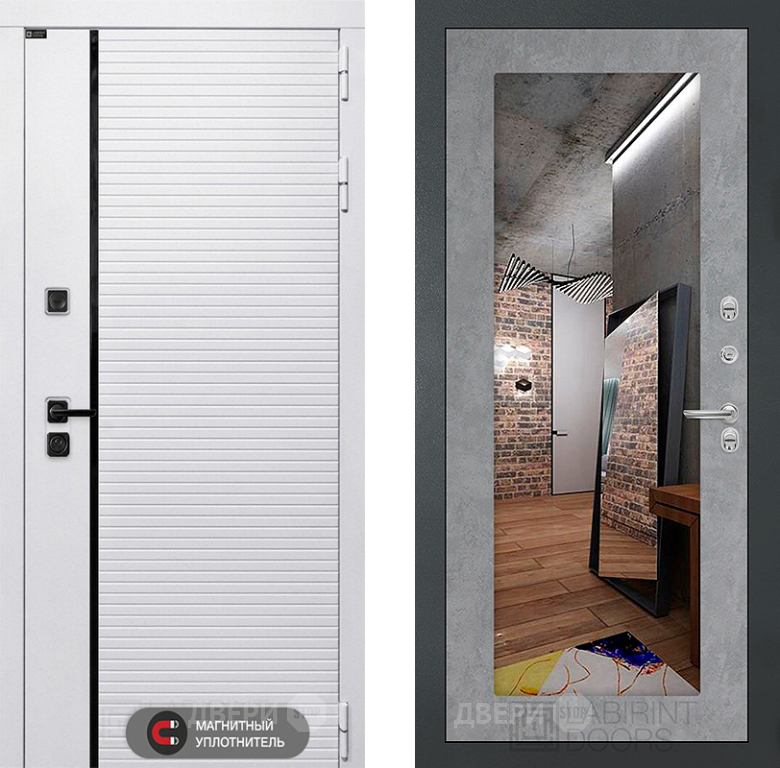 Входная Дверь Лабиринт (LABIRINT) Royal Зеркало 18 Бетон светлый 860x2050 мм