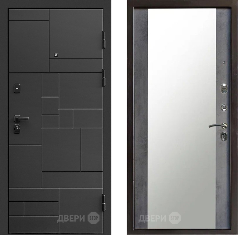 Входная Дверь Престиж Kvadro Зеркало Бетон темный 860x2050 мм