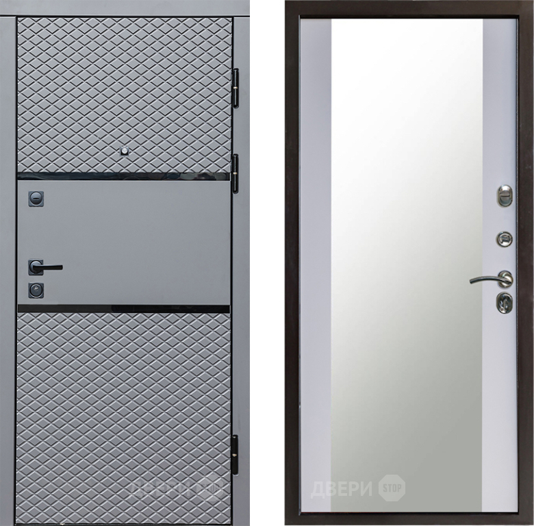 Входная Дверь Престиж Ромб Зеркало Белый софт 860x2050 мм