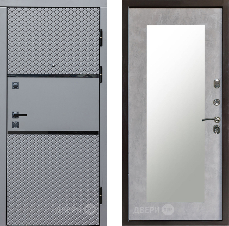 Входная Дверь Престиж Ромб Зеркло Пастораль Бетон светлый 860x2050 мм