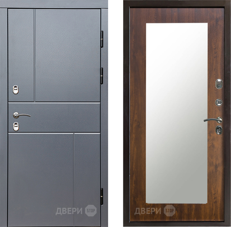 Входная Дверь Престиж TERMO с терморазрывом Горизонт Грэй Зеркало пастораль Дуб 860x2050 мм