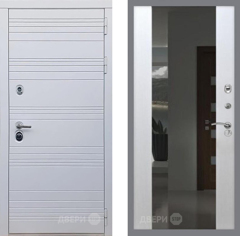 Входная Дверь Рекс (REX) 14 Силк Сноу СБ-16 Зеркало Белый ясень 860x2050 мм