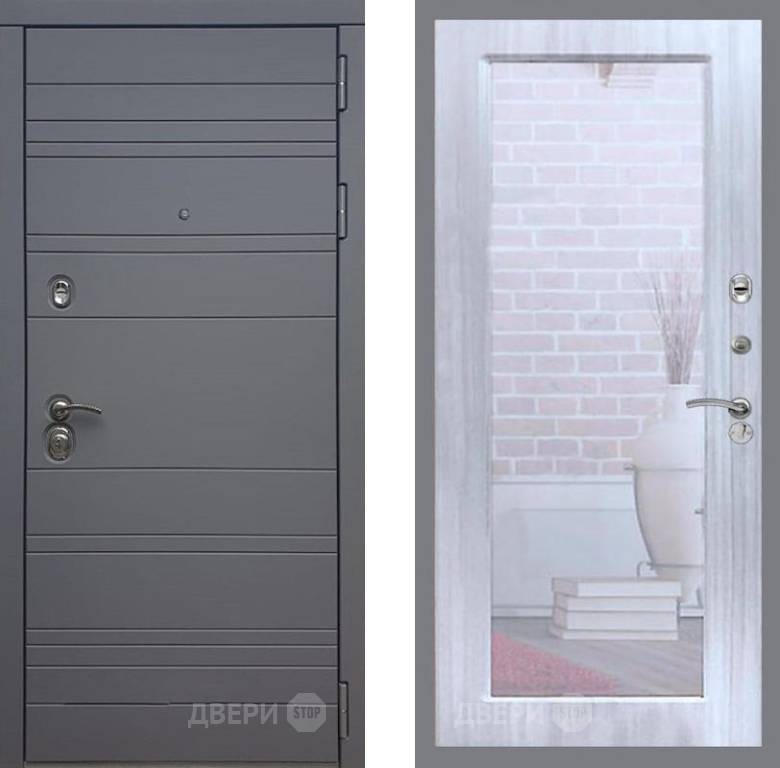 Входная Дверь Рекс (REX) 14 силк титан Зеркало Пастораль Сандал белый 860x2050 мм