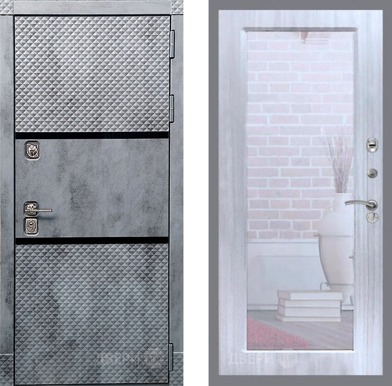 Входная Дверь Рекс (REX) 15 Бетон Темный Зеркало Пастораль Сандал белый 960x2050 мм