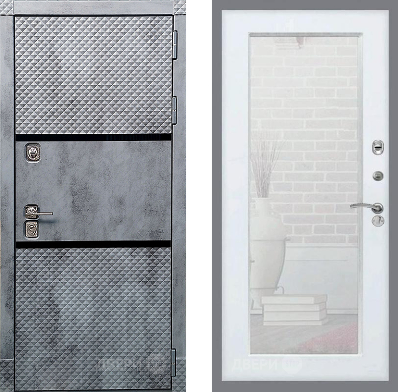 Входная Дверь Рекс (REX) 15 Бетон Темный Зеркало Пастораль Силк Сноу 860x2050 мм