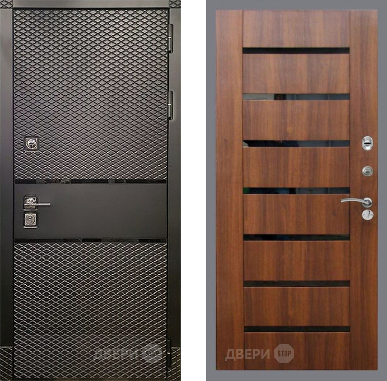 Входная Дверь Рекс (REX) 15 Черный Кварц СБ-14 стекло черное Орех бренди 860x2050 мм