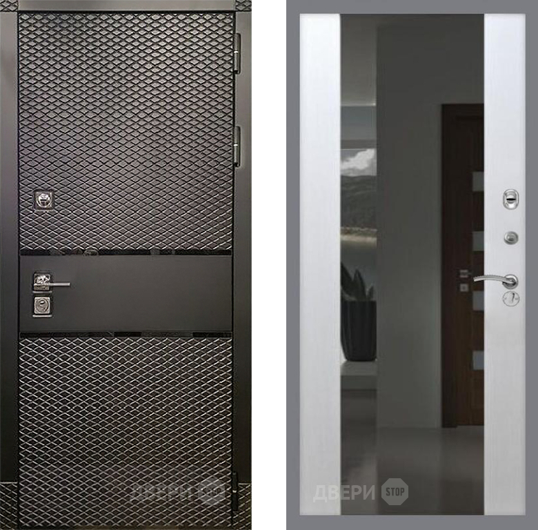 Входная Дверь Рекс (REX) 15 Черный Кварц СБ-16 с Зеркалом Лиственница беж 860x2050 мм