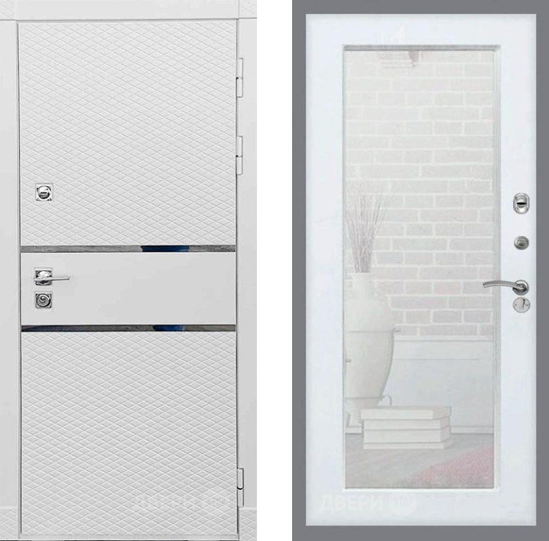 Входная Дверь Рекс (REX) 15 Силк Сноу Зеркало Пастораль Белый ясень 960x2050 мм