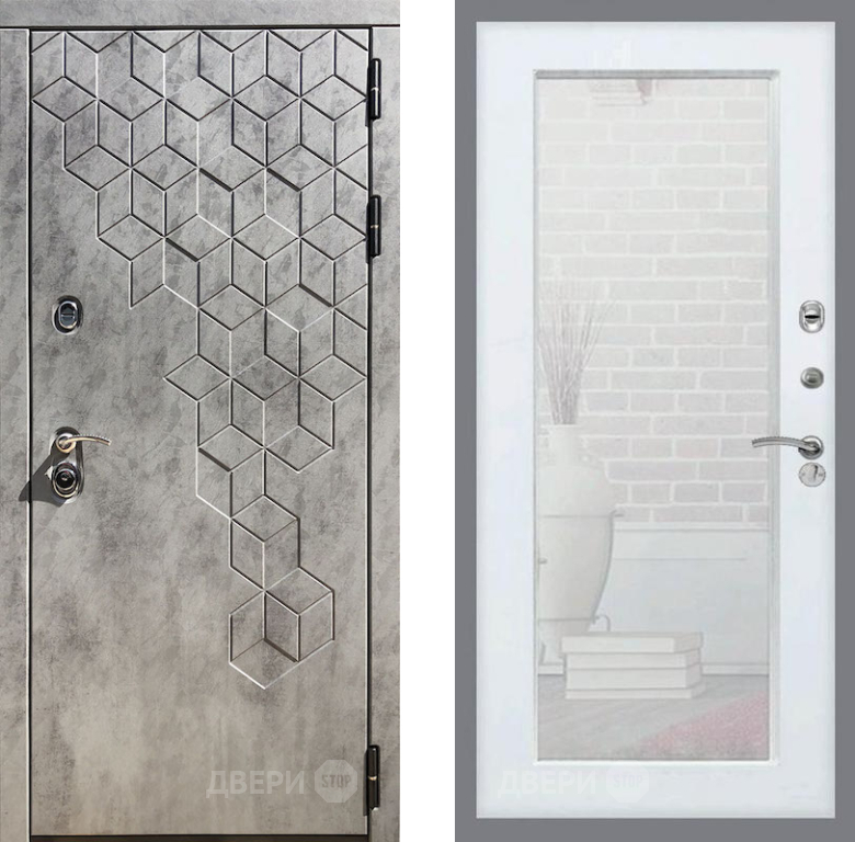 Входная Дверь Рекс (REX) 23 Зеркало Пастораль Белый ясень 860x2050 мм
