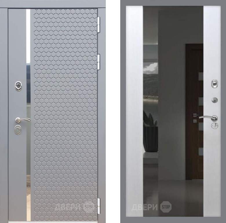 Входная Дверь Рекс (REX) 24 СБ-16 Зеркало Белый ясень 860x2050 мм