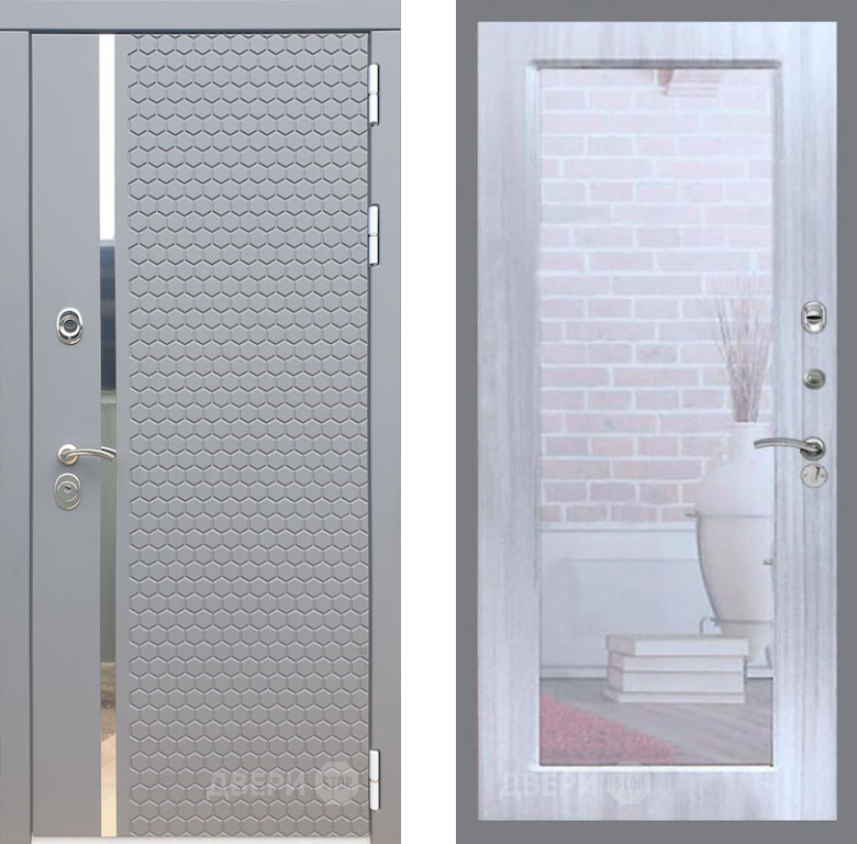 Входная Дверь Рекс (REX) 24 Зеркало Пастораль Сандал белый 860x2050 мм