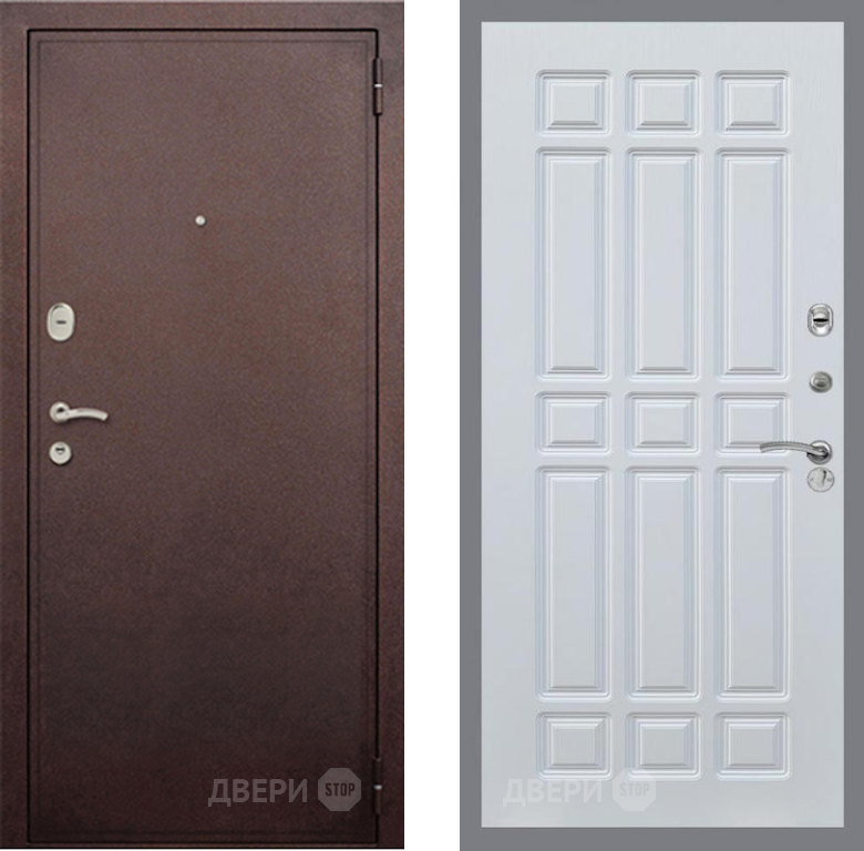 Входная Дверь Рекс (REX) 2 Медный Антик FL-33 Белый ясень 860x2050 мм