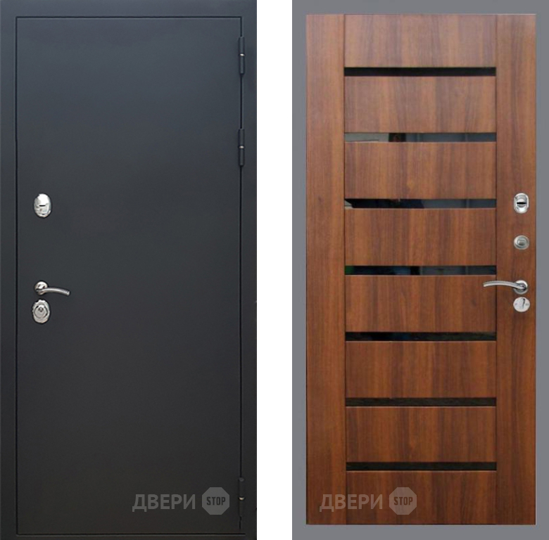 Входная Дверь Рекс (REX) 5 Черный Муар СБ-14 стекло черное Орех бренди 860x2050 мм