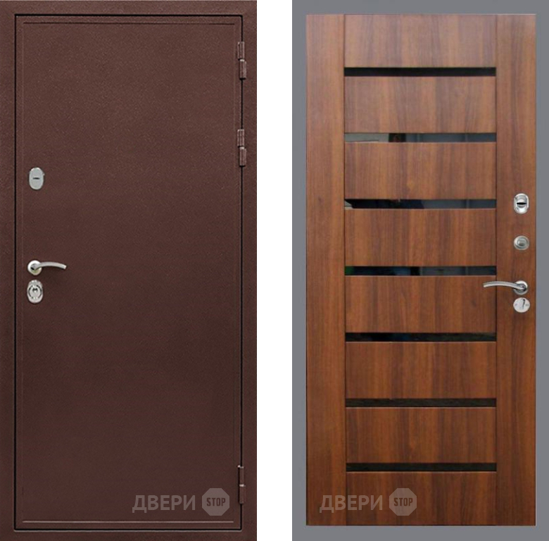 Входная Дверь Рекс (REX) 5 металл 3 мм СБ-14 стекло черное Орех бренди 860x2050 мм