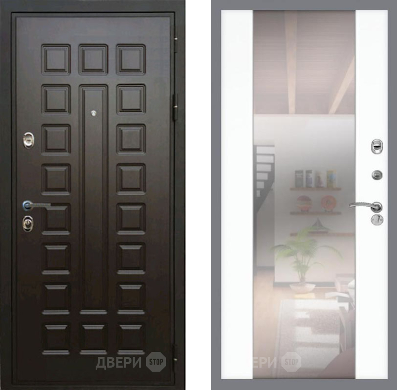 Входная Дверь Рекс (REX) Премиум 3к СБ-16 Зеркало Силк Сноу 860x2050 мм