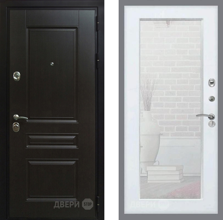 Входная Дверь Рекс (REX) Премиум-Н Зеркало Пастораль Силк Сноу 860x2050 мм