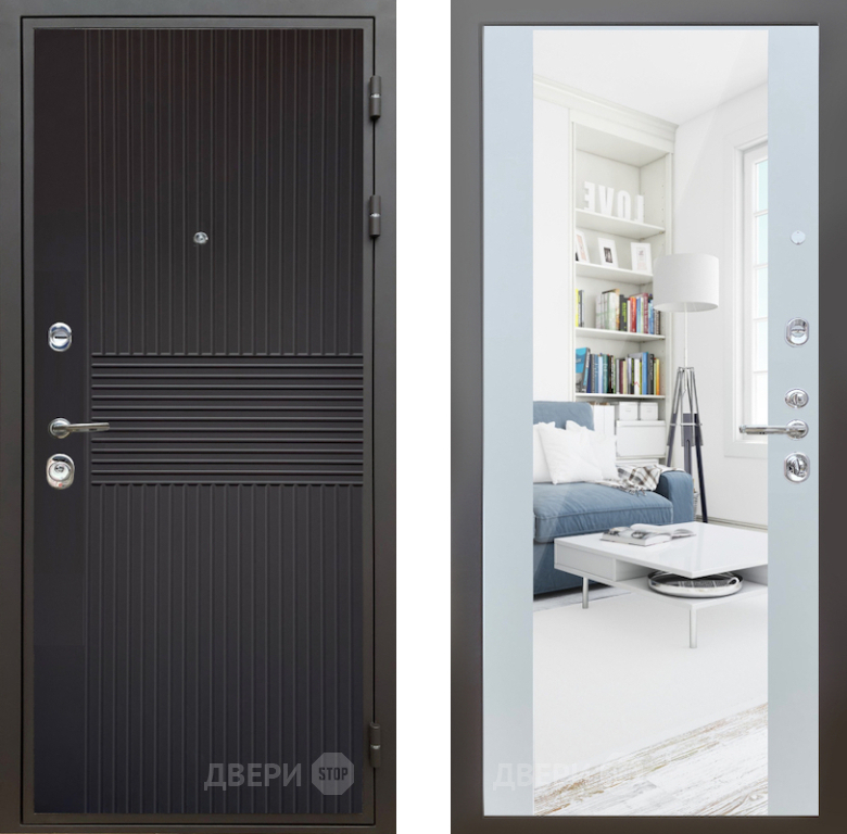 Входная Дверь Шелтер (SHELTER) Комфорт Черная шагрень 13 с зеркалом Белый матовый 860x2050 мм
