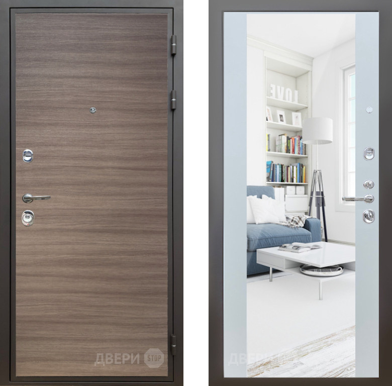 Входная Дверь Шелтер (SHELTER) Комфорт Дуб тоскано поперечный 13 с зеркалом Белый матовый 860x2050 мм