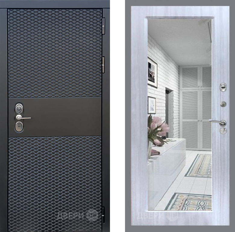 Входная Дверь Стоп БЛЭК CISA Зеркало Сандал белый 860x2050 мм