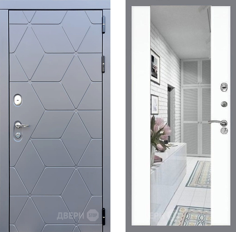 Входная Дверь Стоп КОСМО Зеркало СБ-16 Силк Сноу 860x2050 мм